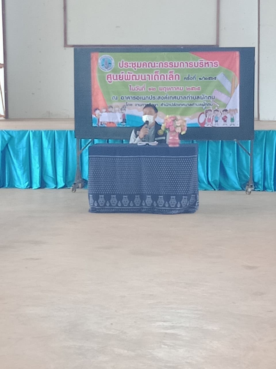 วันที่ 12 พฤษภาคม 2565 เวลา 09:00 น. งานการศึกษา สำนักปลัดเทศบาลตำบลผักตบ ได้ประชุมคณะกรรมการบริหารศูนย์พัฒนาเด็กเล็ก ครั้งที่ 1 / 2565 ณ อาคารอเนกประสงค์ เทศบาลตำบลผักตบ โดย นายคำปลาย คำแพงราช นายกเทศมนตรีตำบลผักตบ เป็นประธานในการประชุมคณะกรรมการบริหารศูนย์พัฒนาเด็กเล็ก เพื่อพิจารณาเห็นชอบร่างแผนปฏิบัติการประจำปีการศึกษา 2565