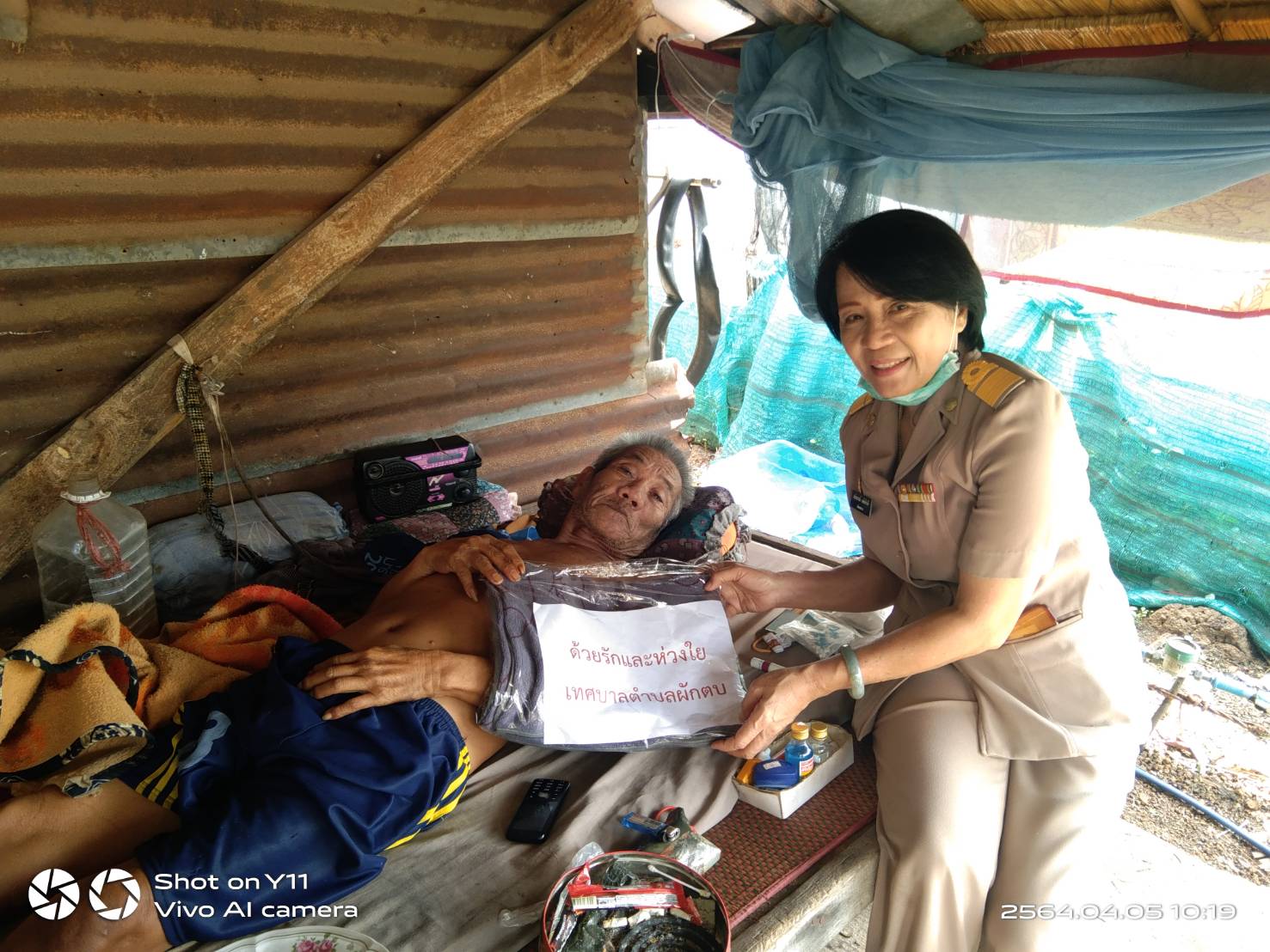 วันที่ 5 เมษายน 2564 นางลมัยภรณ์ แย้มยินดี ปลัดเทศบาลตำบลผักตบ พร้อมด้วยงานสาธารณสุข และอาสาสมัครบริบาลท้องถิ่นออกเยี่ยมผู้สูงอายุที่มีภาวะพึ่งพิง และได้มอบสิ่งของเช่น ผ้าเช็ดตัว กระบอกปัสสาวะ อุปกรณ์ช่วยพยุงตัวเดิน ไม้ค้ำ ให้กับผู้สูงอายุจำนวน 4 ราย