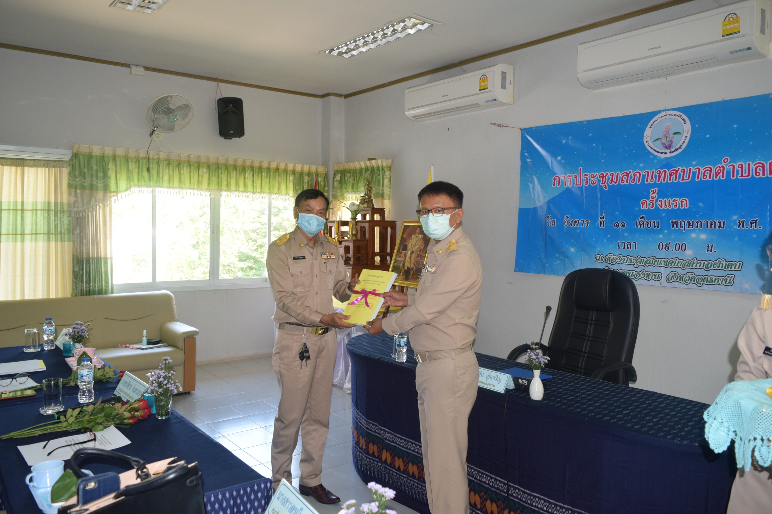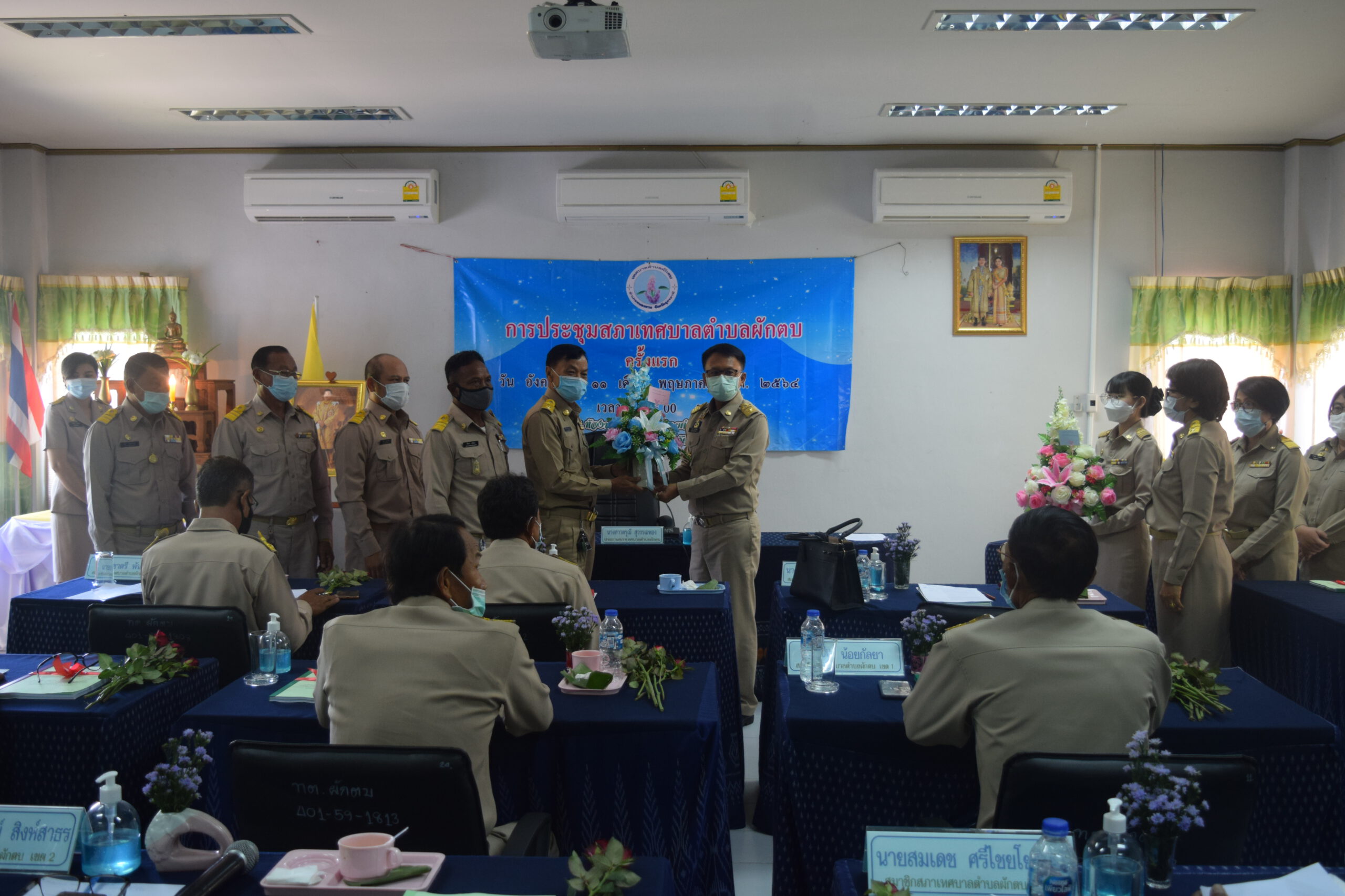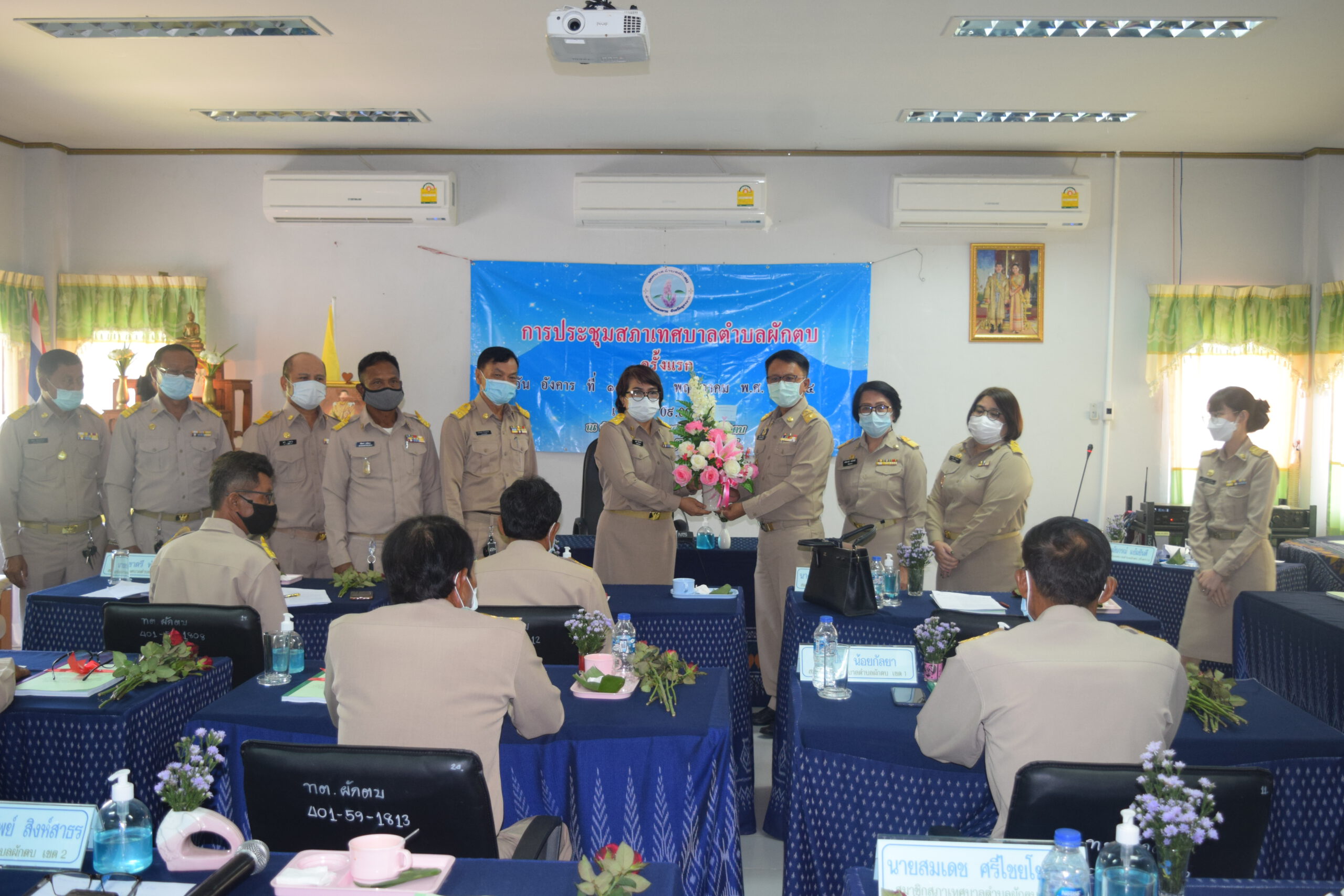 วันนี้ 11 พฤษภาคม 2564 เวลา 09.00 น. ณ ห้องประชุมสภาเทศบาลตำบลผักตบ นายประทีป อุ่ยเจริญ นายอำเภอหนองหาน ปฏิบัติราชการแทน ผู้ว่าราชการจังหวัดอุดรธานี เป็นประธานเปิดการประชุมสภาเทศบาลตำบลผักตบ ครั้งแรก พร้อมแสดงความยินดีกับ นายคำปลาย คำแพงราช นายกเทศมนตรีตำบลผักตบ คณะผู้บริหารและสมาชิกสภาเทศบาลตำบลผักตบ และให้เกียรติประดับเครื่องหมายอินทรธนู ให้กับคณะผู้บริหารและสมาชิกสภาเทศบาลตำบลผักตบ ในโอกาสเข้ารับหน้าที่ใหม่ โดยมี นายสานิตย์ คชรมย์ ทำหน้าที่ประธานสภาเทศบาลชั่วคราว นำสมาชิกกล่าวปฎิญานตนและเลือกประธานสภาเทศบาลตำบลผักตบ ได้แก่ น.ส.ดรุณี สุวรรณทอง ซึ่งได้ดำเนินการประชุมตามระเบียบวาระ